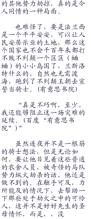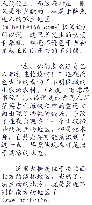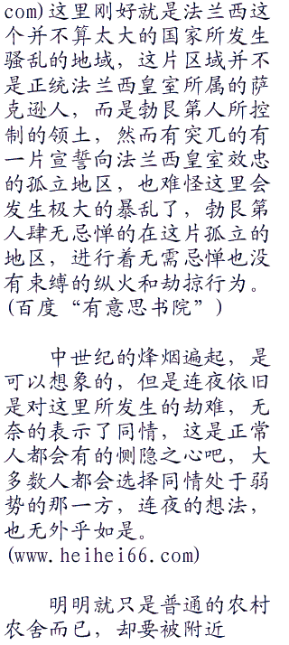 如果连夜对于欧洲的人种有所研究的话,那就可能能够认出来这些肆意纵火并且劫掠的匪徒,乃是日耳曼民族的另一个分支人种,勃艮第人。但是,说起来,大致上都是一个样子,除非专门研究这方面学问的砖家,怎么可能认得出来这些细微的人种区别嘛!