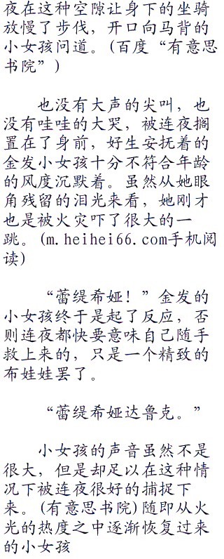 “喂,小女孩,你叫什么名字。”待得赤兔马终于是冲出了燃烧成废墟了的村舍之后,连