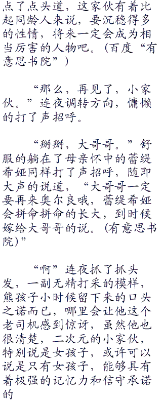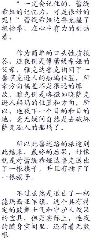 小孩子,特别是小女孩,‘女儿’,可是很可爱的啊。无论是谁跟小蕾缇希娅嬉闹了一阵子之后,都会下了如此的结论。