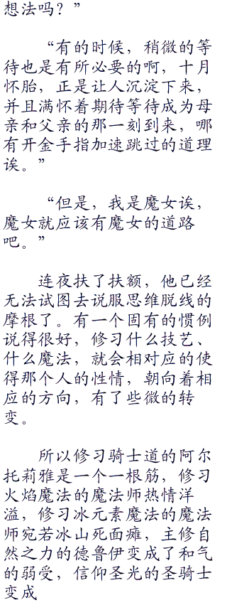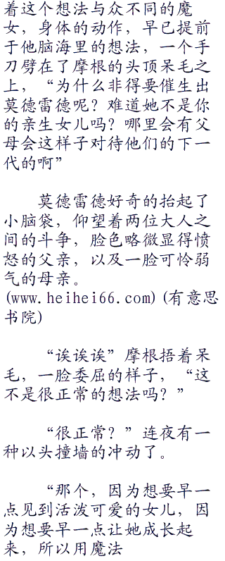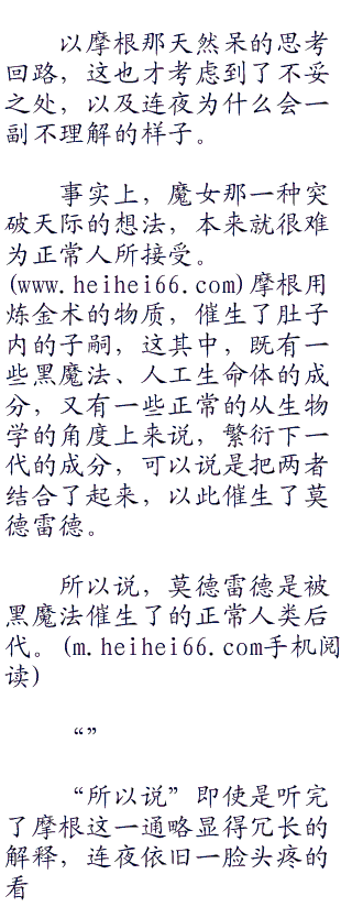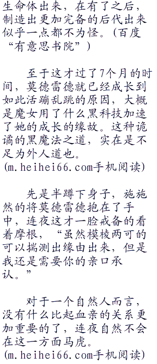 一时间过热的大脑也逐渐的冷却了下来,连夜也满满的能够接受莫德雷德是自己的女儿这一点了,毕竟,摩根这个魔女,相当的专精于黑魔法之中的那一些黑科技,炼金术啊,人工生命体啊。在没有男性米青子的情况之下,她尚且能够炼金术制造出不是很像样子的人工