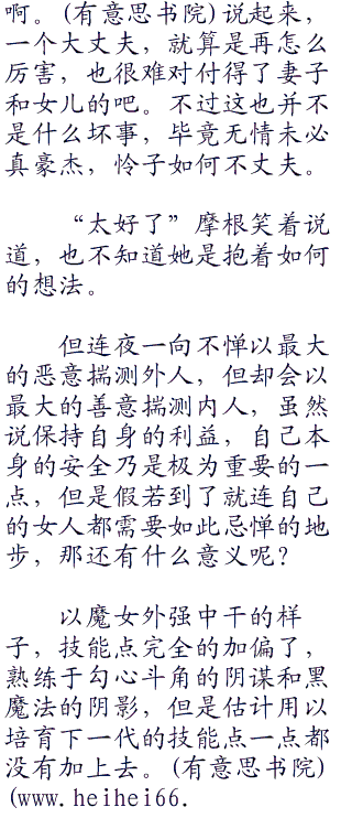 虽然这也不怪他,他也不清楚,只是‘我和摩根女爵那一个晚上不得不说的事故.avi’之后,就会如此幸运的拥有了一个女儿。