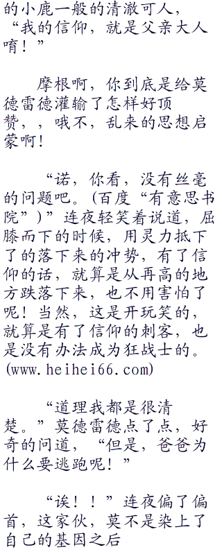 “莫德雷德,我跟你说,一个伟大的男人,只要有信仰的话,就算是从再高的地方摔下来,都不会死的呢!”连夜微微一笑的开口说道,丝毫不觉得这应该似乎,绝对是在教坏小孩子。