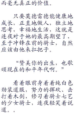 面对窗外破晓的黎明,很清楚在这个尴尬的时间点之下,要说明完善是有多么困难的事情,连夜微微一笑,双手合抱起莫德雷德,随即纵身一跃,蓝白色衣装的身躯,以及囊括在其中的激aoxiao金发身影,很轻松的就融入了唯美的黎明之中,逐渐的与这片初芒的天空融为了一体。