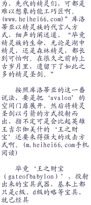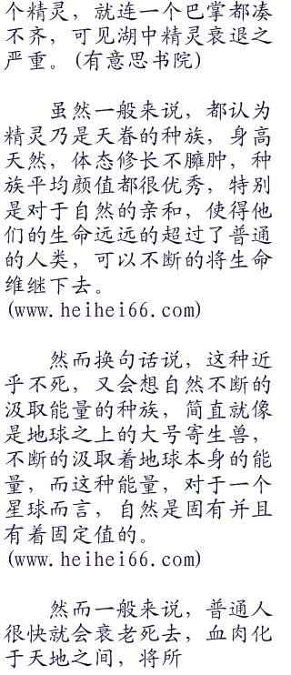 湖中精灵是一种很奇妙的生物存在,既有接近着永生种的生命长度,却整天只能够待在‘avalon’内,很难说她们的生活会不会有意义。