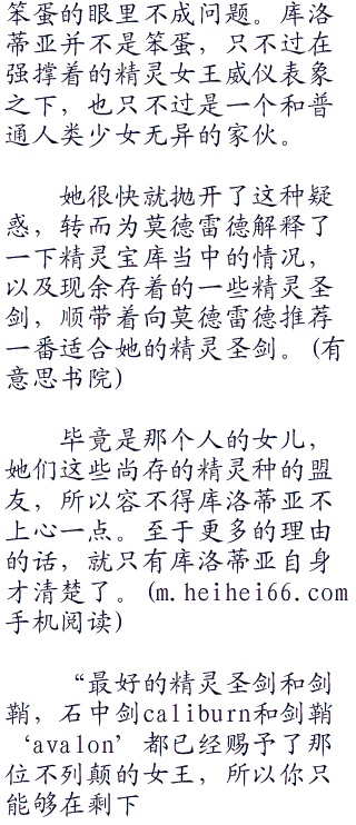 然而在‘avalon’这种四季常春的气候之下,还会感冒,就未免有些违反常理,湖中精灵可一向都不是这种娇弱的生物。