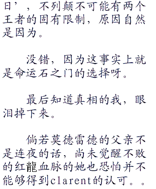 但也正因为如此,使得caliburn和clarent同时选定了主人,选定了不列颠之王,这是很难想象的事情,即使是打造出了这两柄精灵圣剑的湖中精灵,也不觉得会有两位圣剑使能够解封这两把王权之剑。毕竟‘天无二日’、‘一山不容二虎’的道理,对于王权至上的社会,是理所当然的道理。