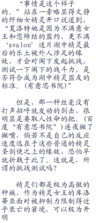 在这‘avalon’之内,除了连夜三人之外,自然是只有其她两位湖中精灵了。所以可能她们并不是闲得蛋疼,因为她们并没有蛋,,就当是闲得奶疼好了。