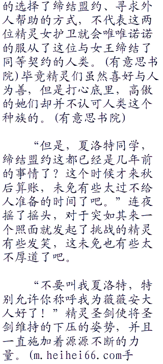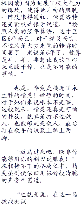 精灵种毕竟是精灵种,通常都给人留下了出众美貌的印象,可以说精灵种的无论任何个体都极美的,或者说以下限来说,精灵种是不可能丑陋的,但是由于过于出众的美貌和整个种群给人留下的普遍印象,就使得连夜对于精灵种的美貌丝毫不觉得有什么好动摇