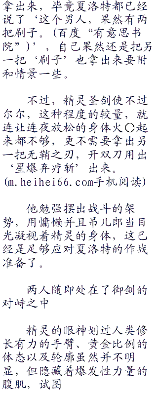 “铛”火红色的无鞘之刃与辉耀的精灵圣剑相碰,到底是体态纤细的精灵而已,夏洛特根本抵挡不住连夜微微施展开来的力气。