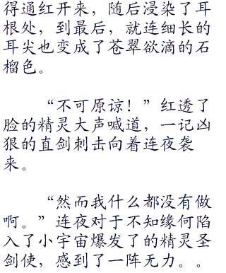 “这个男人,果然有两把刷子。”精灵圣剑使自语着眯起了眼睛,仔细的搜索着连夜身上的每一丝破绽。“应该说女王殿下也不是完全欠缺了考量的嘛?”