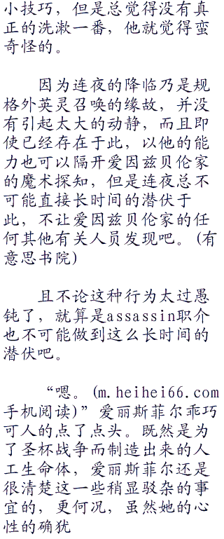 实际上,作为精力充沛的英灵很少需要像普通人类那般借助睡眠来恢复精力和魔力,但是一般而言,为了维持自己乃是‘人类’的这一种初心,连夜总是会刻意的去维持和人类一样的日常作息。