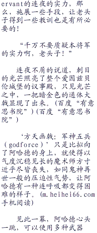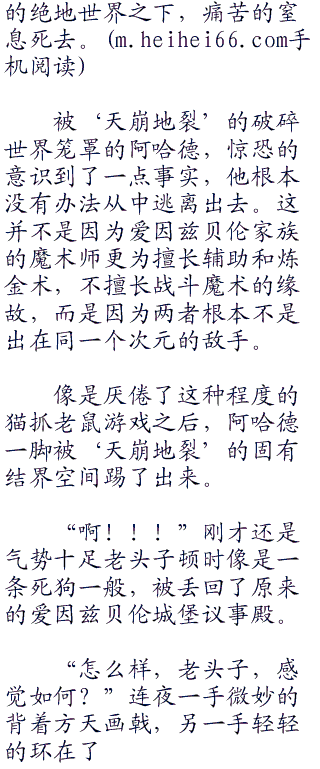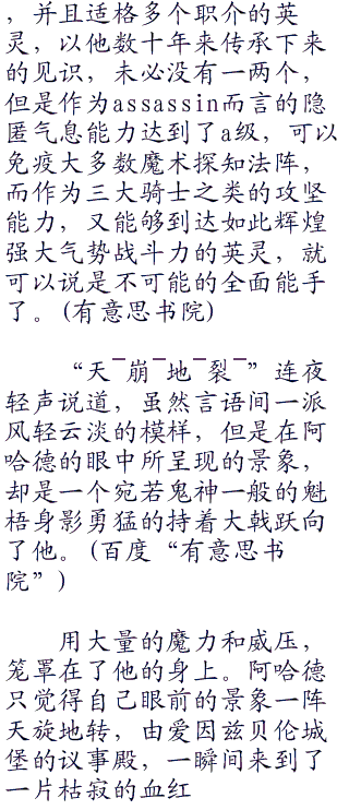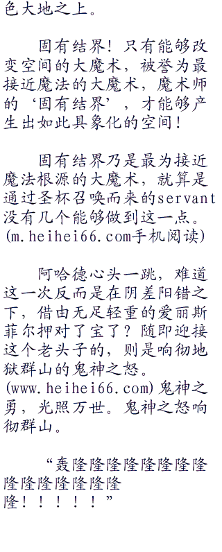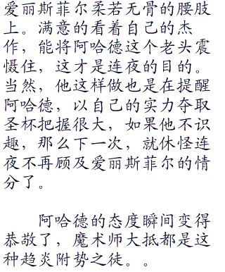 虽然碍于爱丽斯菲尔这一层关系的薄面,连夜觉得把赐予爱丽斯菲尔性命之人的阿哈德不由分说的杀死是太过不讲道理的事情,这番随意的杀人举动,也只不过是引起爱丽斯菲尔的恐惧罢了,但是既然阿哈德此刻质疑爱丽斯菲尔作为ster的水准,和作为s