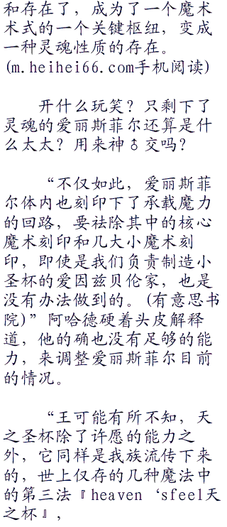 “请王恕罪!天之圣杯的容器有着非常严格的要求,所以爱丽斯菲尔是被植入了作为容器的‘小圣杯’的核心刻印而孕育出生的特殊人工生命体,这是她伴生的使命,核心刻印无法祛除,如果是被暴力的破解了,爱丽斯菲尔的生命也会因此迎来终结,这并不是我等能够决定的,而是‘大圣杯’做出的选择,我想陛下也不希望看到这种结局吧。”