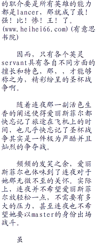 “你是我的契约者,也是我的公主,那个老头和你的家族,没有资格限制你的自由,更没有资格决定你的命运,如果不是看在爱丽斯菲尔你的面子上,我早就把他那一副死人脸的表情扯烂掉了。”