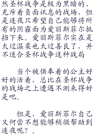 连夜单手靠在心口,行了一个标准的骑士礼,爱丽斯菲尔对于她而言,不是简单的ster,而是宝贵的雪国公主。