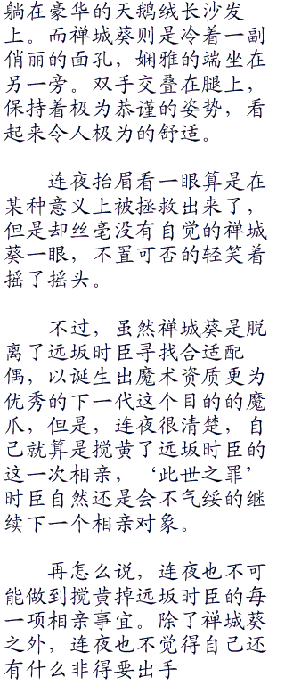 ‘相亲’极低的失败可能性,有着百般熟虑的他,也是有所考虑过的,所以除了禅城葵之外,她也挑选出了其余好几位合适的魔术师后代女子人选。