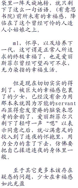 霸道的话语深入爱丽斯菲尔的内心,四目相对的两人,早已经通过眼睛作为视窗交流了很多东西。