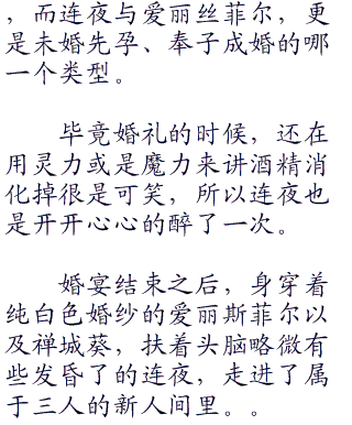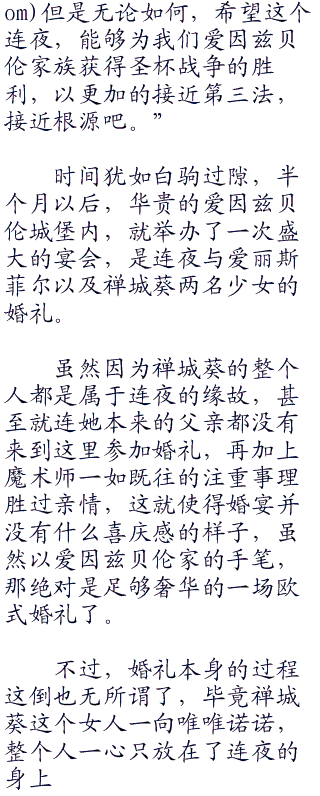 “对了,阿哈德,到时候准备一下,我要和爱丽斯菲尔在爱因兹贝伦城堡奉子成婚!”