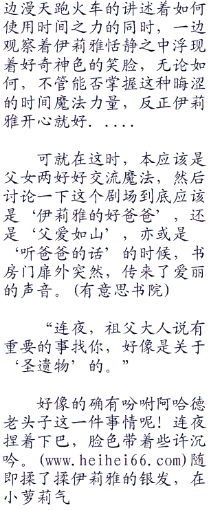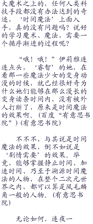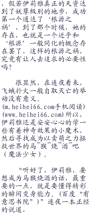 很明显,连夜并不希望伊莉雅走上这个型月世界观之下,魔术师的那一条通向‘根源之祸’的魔术道路