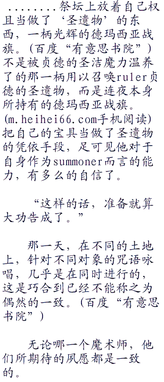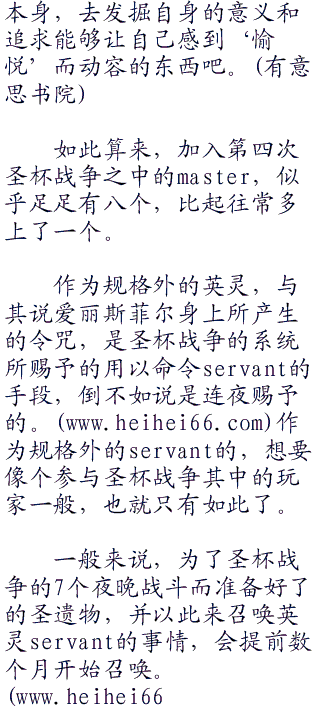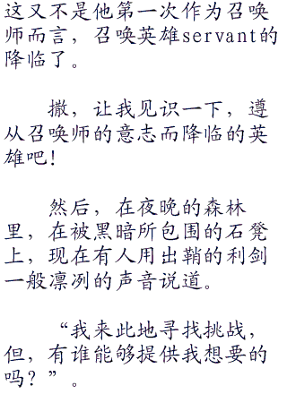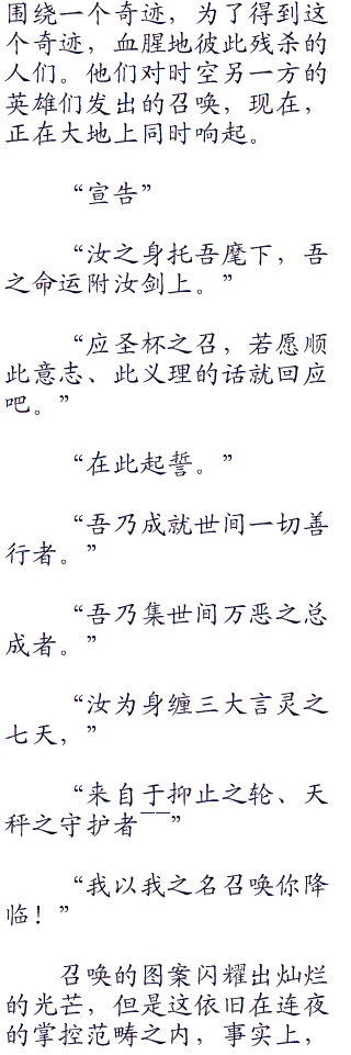 无论是一早确定了的御三家爱因兹贝伦家、间桐家和远坂家的参与者,还是其他几位位被天之圣杯选中了的,拥有强烈愿望的ster。