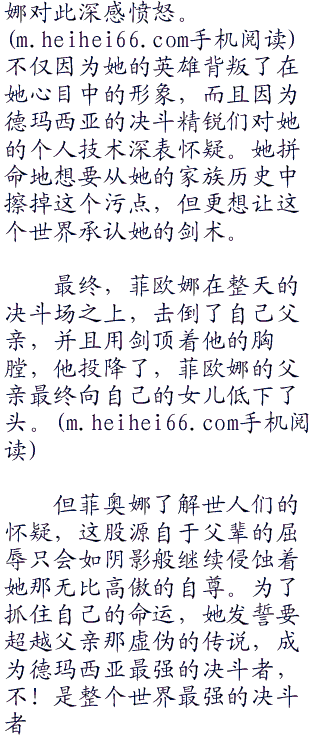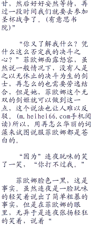 对于菲欧娜而言,充满了挑战性的决斗自然是无可厚非的,但是在一场又一场的决斗之余,就要放松下来,毕竟,一个人的生活,不可能是完全的由‘决斗’、‘战斗’和‘挑战’之类的平凑起来的,无论如何,劳逸结合这个硬道理,才是附和正常人机理的生活方式。