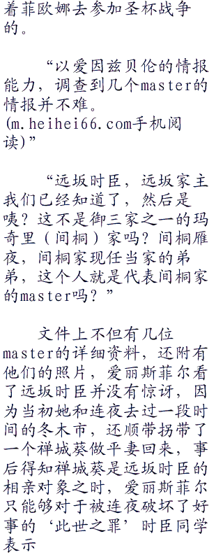 连夜当然没有能够拥有‘透视眼’这种好顶赞的绅士技能,只不过对于知晓圣杯战争这个系统的他而言,自然很清楚在这个时间,阿哈德会煞费苦心的收集什么资料过来,也唯有其他7位参与圣杯战争的ster的情报了。