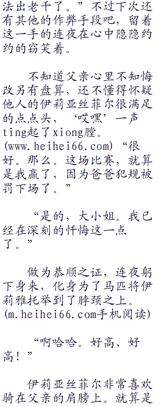 “用魔术作弊更是一种可恶的举动啊,爸爸!”伊莉雅愤愤的娇声职责道。