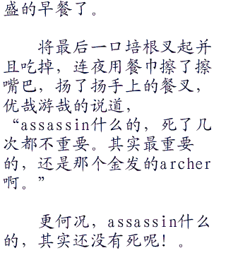 无法战胜assassin想都不用想,他的直觉便告诉,位于他面前的这个人是他绝对无法战胜的。