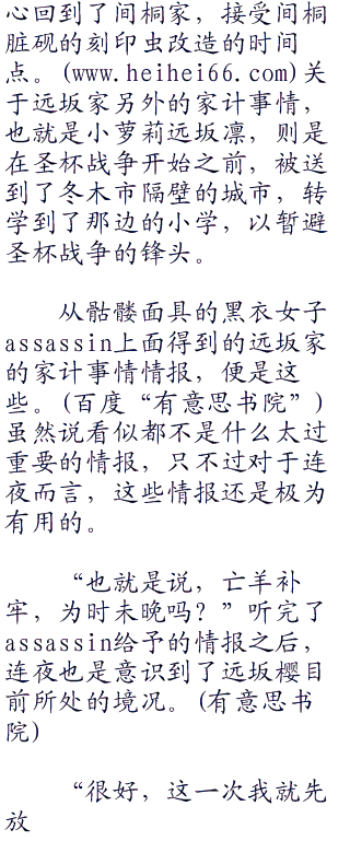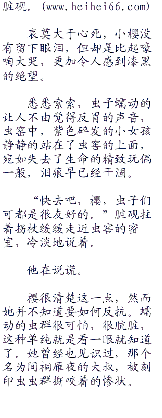 毕竟,在大多数小萝莉的眼里,魔术传承应该都是一种极为光鲜好玩的东西才对,然而,间桐家的操虫魔术,可并非如此。