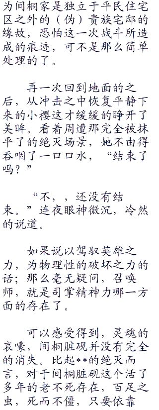 在圣杯战争之中,名为lancer的职介拥有最快的瞬间爆发速度,名为rider的职介,则是拥有最高的平均速度,因为suoner(召唤师)与其说是具有任何职介的特性,倒不如说是可以行使各种职介的力量的缘故,连夜的瞬间爆发速度,绝对不在于两战的两个lancer之下。