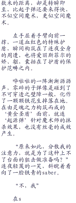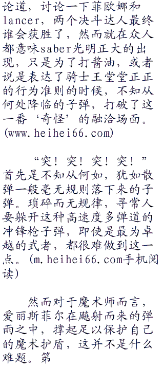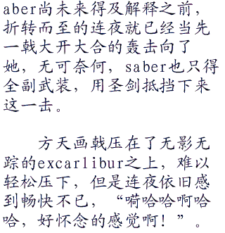 在清新的海风之下,煮酒话桑麻,如果saber姑且是和连夜坐而论道,两个静静的等待菲欧娜和lancer的决斗结束,很有可能还成为一个富有骑士精神的fairytale,富有浪漫主义的童话故事。