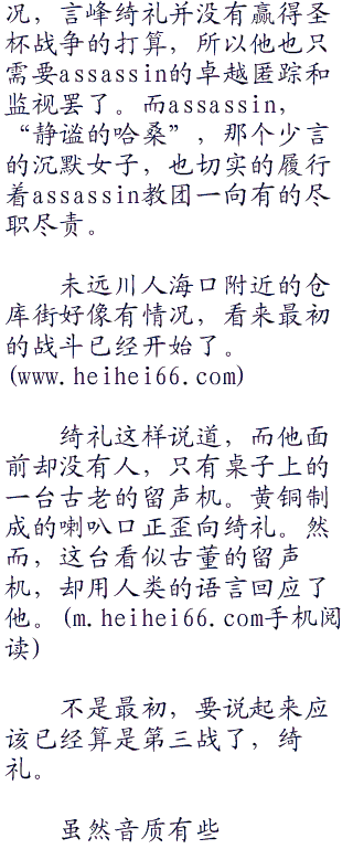 他所看和所听到的,是在远处的商店街所进行的一场不为人知的servant战其内容与作为他servant的assassin所见完全一样。