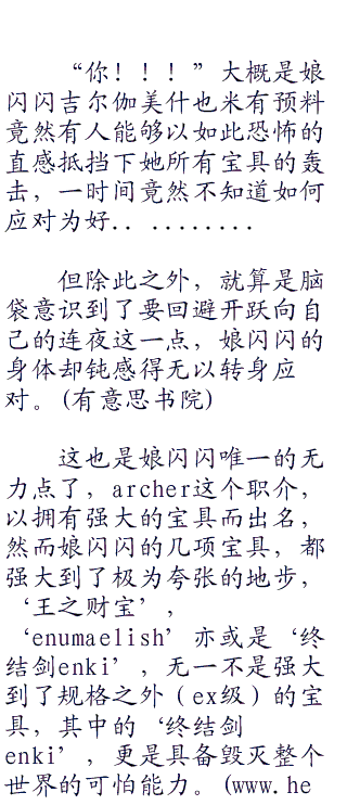 这些宝具产生了如此巨大的破坏力,让人难以相信这仅仅是在投掷刀剑之类的武器而已,虽然没有解放真名,但只是以这种粗鲁的投掷标枪方式,就足以造成不菲的破坏效果!、