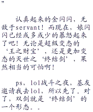 虽然娘闪闪的宝具鎏金铠甲,可以抵挡下方天画戟的大部分力量,但是轰击之下所产生的震荡感,还是无