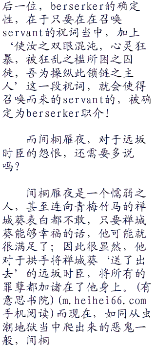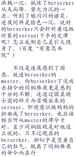 其他所有的英灵servant,在召唤之前,职介确定应该都是有一些随机性的。唯有assassin职介和berserker职介可以通过特殊的手段加以确定。