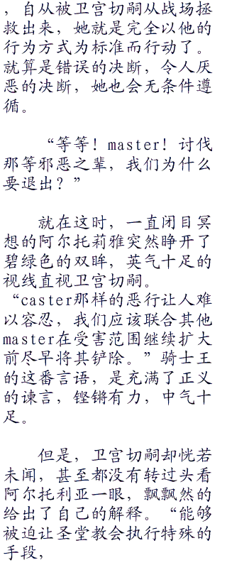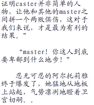 所有人都没有意识到,他们的头顶,悄无声息的睁开了一只血红淡漠的命运冷眼。而没有停留在自己魔术师工房的caster,以及他的ster雨生龙之介的位置,也由此被窥、视。