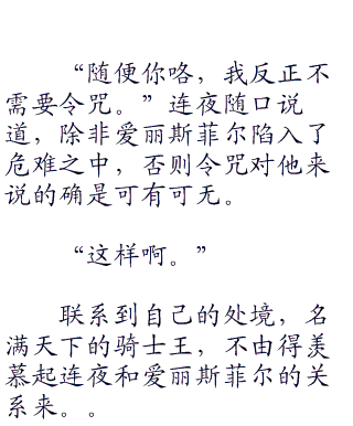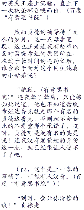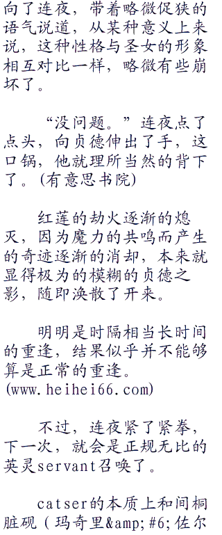 “战争结束了之后,在那栋雷米村庄,我一直在那里等待着。我都已经等了你千年多了,你就没有什么相对我,相对蕾缇希娅说的吗?”此时的贞德,就像是一个受欺负了而抱怨的小女人一般,哪里还看得出圣女那种神圣不可侵犯的感觉。