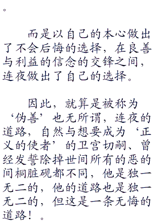 每一个曾经纯真和童稚的孩子,总是会成长,总是会蜕变,等她离开父母的羽翼,把自己放入真正的世界当中去,没有一个是依然洁白的走出来,不是蒙雾,就是染黑,,但至少现在为止,远坂凛还是善良得可爱的一个小萝莉。