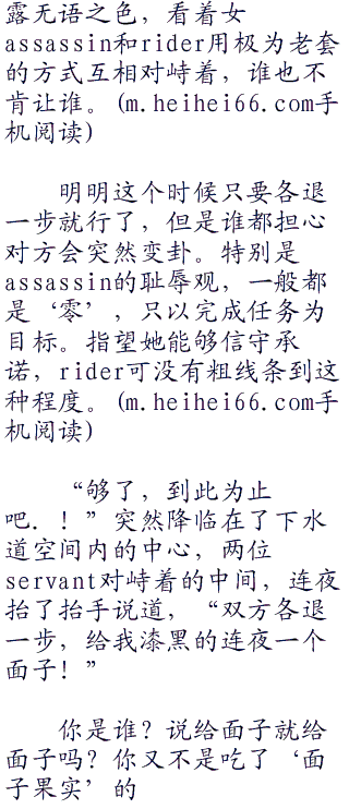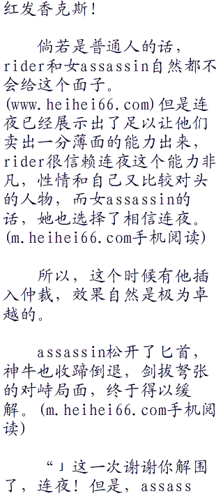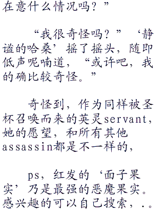 这个回答顿时让rider感到脊背发寒,拥有如此程度气息遮断能力、忍耐力和爆发力的assassin,当真是让人觉得随时有一把达摩克利斯之剑悬在了头顶。虽然英灵servant可没有那么轻松被刺杀而死,但是身体羸弱的人类魔术师就不一定了。