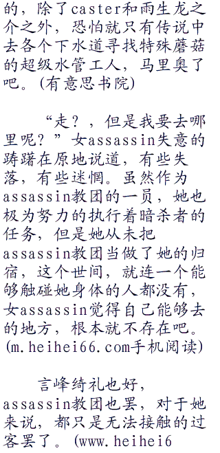 “你是那一个,能够能够触碰我的存在吗?”女assassin在心底里叹了一口气,神色有些迷茫。