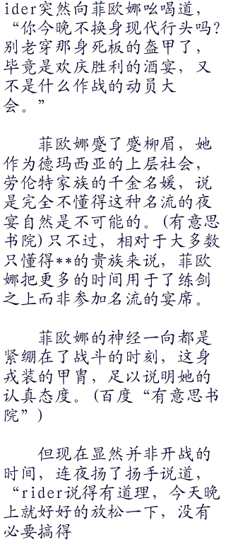 曾经伊斯坎达尔王因对被侵略领土的文化感兴趣,率先穿上了亚洲风情的服装使得身边的随从对他退避三舍。爱丽斯菲尔听说过这故事,但她肯定没有想到,引得面前的rider换上现代服装的原因,其实在于身穿便服的连夜身上