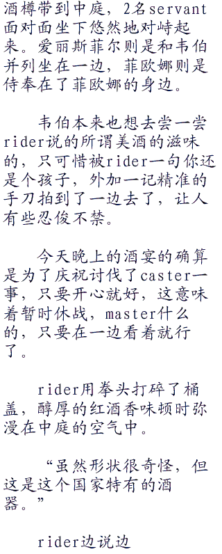 不管怎么看,那都是个木制大型红酒樽。将酒樽轻松夹在腋下的rider,简直就像是个前来送货的酒屋老板一般。