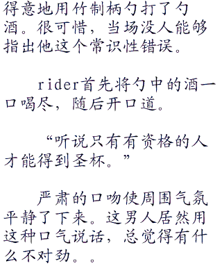 让人更觉得奇怪的,是rider手中的不是他的佩剑武器或其他战斗使用的东西。
