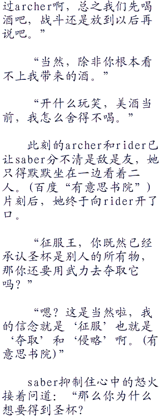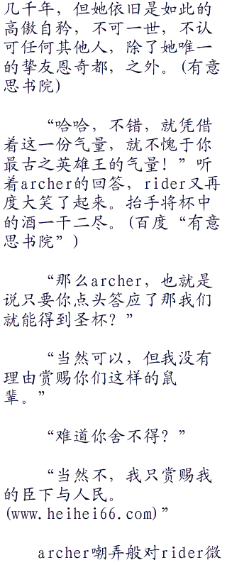 “哼,想必是被说到了痛处了吧。”一边的saber也是在不经意间开始了在言语上对于archer的打击。