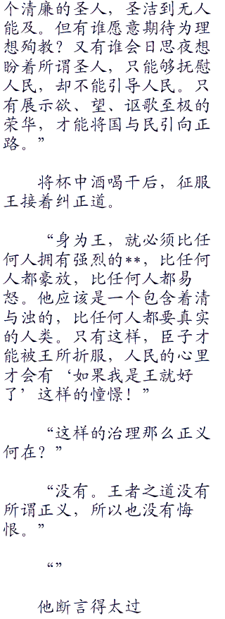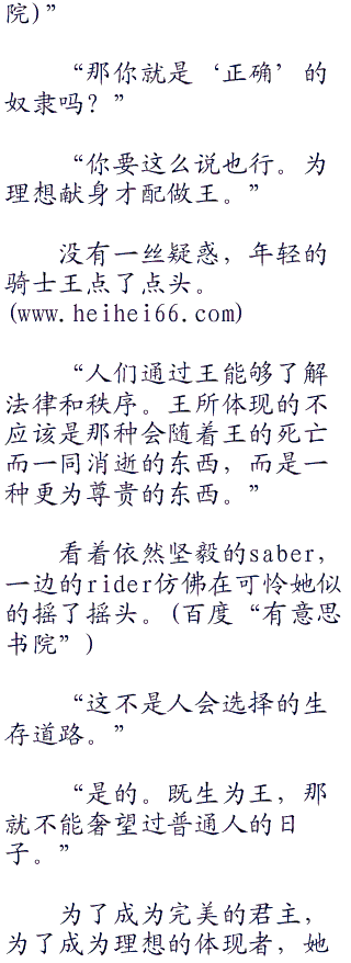 “所以saber,如果有王对自己治理国家的结果感到不满意,那只能说明他是个昏君,比暴君更差劲。”