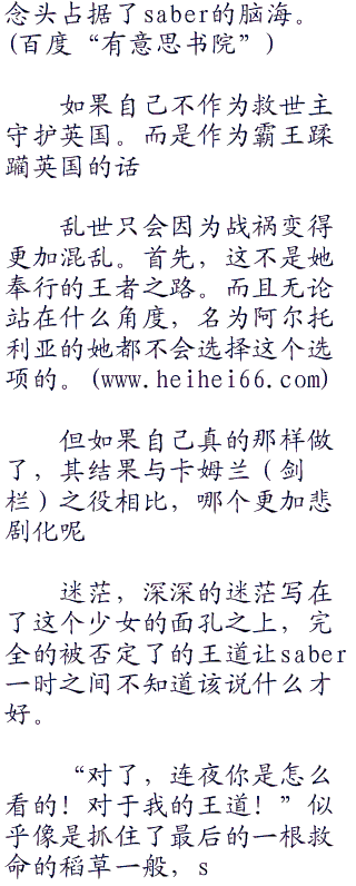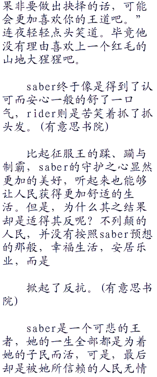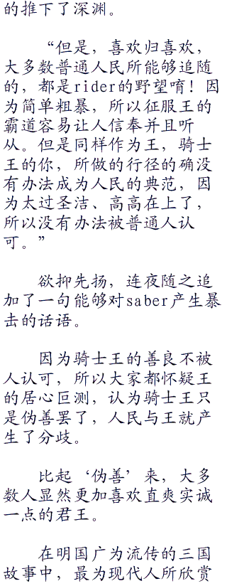 想要反驳的话语有很多,但saber每次想要开口,眼前都会浮现曾经在卡姆兰之战所目睹的那副光景。