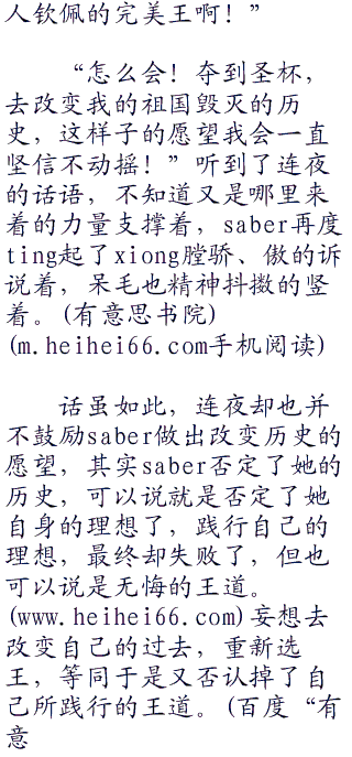 所以saber要达成自己的理想,是很难的一件事情。理想之所以是理想,一般也都是难以成就才会是理想,就像常人难以触及的‘avalon’,便是远离尘世的理想乡。