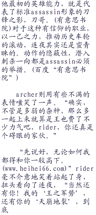 此刻的assassin教团,已经忘记了追求圣杯的愿望,忘记了胜利和令咒的使命。assassin他们已经迷失了自我。