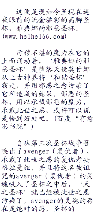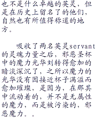 用以打开大圣杯‘天之圣杯’的力量,便是通过吸收了战败英灵servant的灵魂力量,从而满盈的小圣杯。