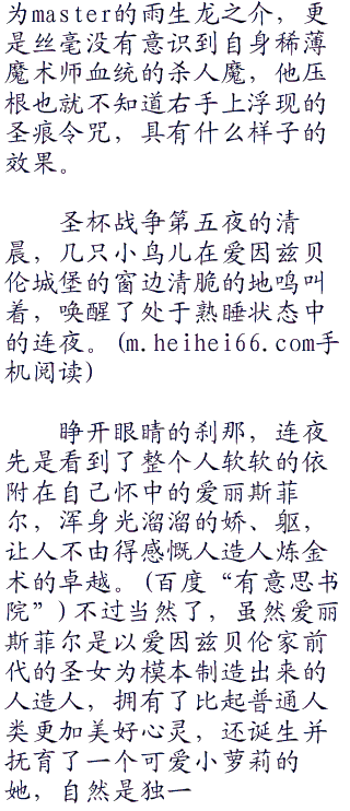 不过,即使是丧失了理智的berserker,依旧会受到令咒的钳制。令咒同样是可以引发卓越效果的魔术,或者说是魔法?